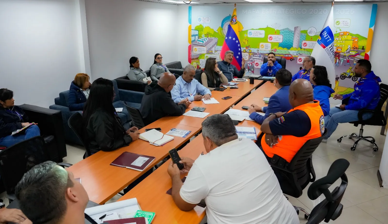 En un encuentro estratégico realizado en la sede principal del Instituto Nacional de Transporte Terrestre (INTT), el presidente de la institución, Dr. Luis Granko Arteaga, junto a representantes del Órgano Superior de Transporte de Carga, cámaras gremiales y autoridades de seguridad, establecieron las líneas de acción que garantizan la operatividad del sector transporte, pilar fundamental de la economía venezolana.