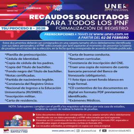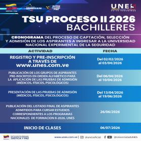 La Universidad Nacional Experimental de la Seguridad (UNES), institución de las y los servidores públicos de la seguridad ciudadana en Venezuela, informa a la colectividad nacional la apertura oficial de su cronograma de captación para los diversos Programas Nacionales de Formación correspondientes al segundo tramo del año 2026.