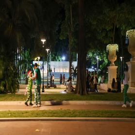 familia y tomándose fotografías en los espacios iluminados.