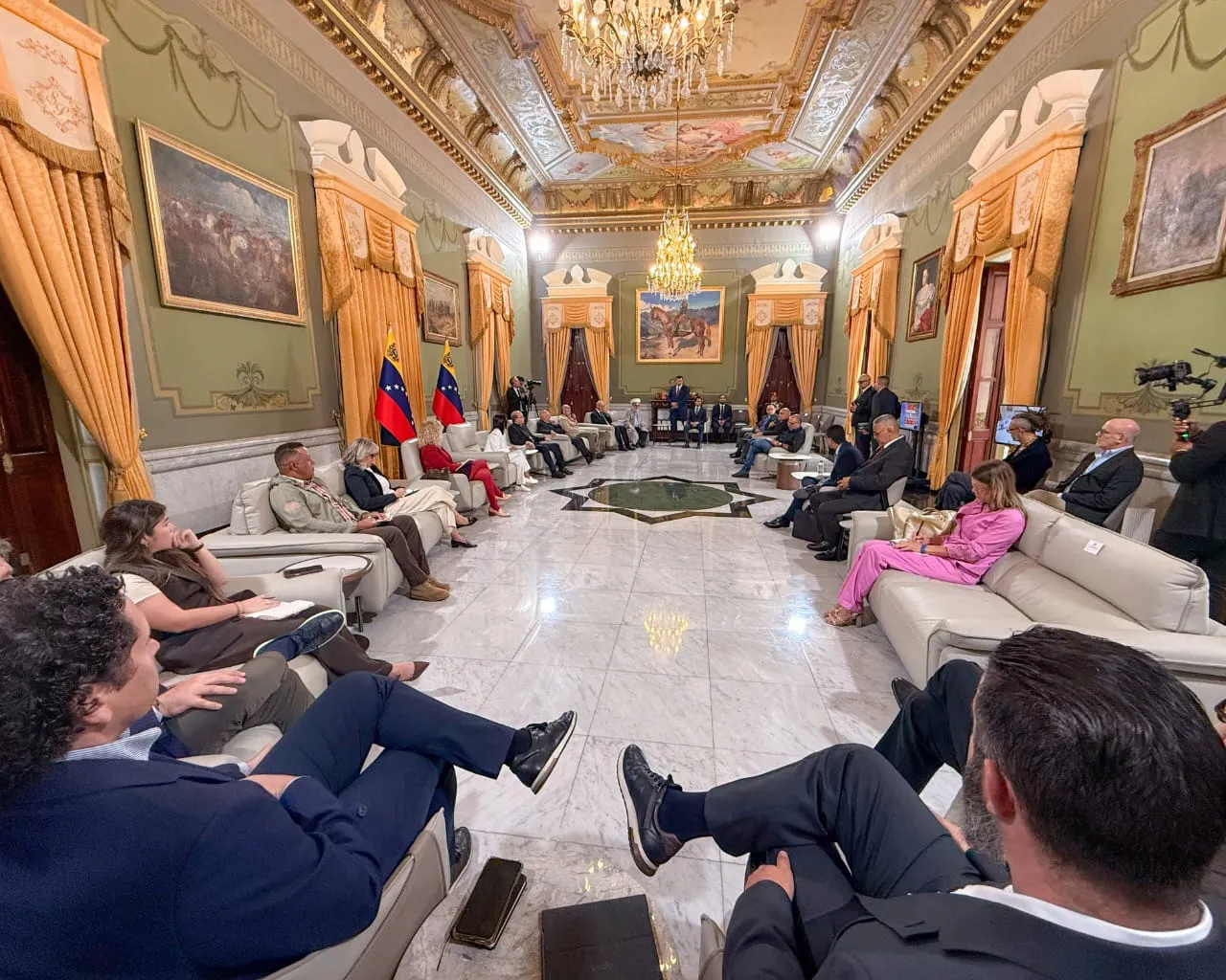 La Presidenta (E) de la República Bolivariana de Venezuela, Delcy Rodríguez, recibió este martes, a los representantes del Programa de Convivencia Democrática y Paz, integrado por líderes de diversas comunidades religiosas del país.