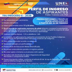 La Universidad Nacional Experimental de la Seguridad (UNES), institución de las y los servidores públicos de la seguridad ciudadana en Venezuela, informa a la colectividad nacional la apertura oficial de su cronograma de captación para los diversos Programas Nacionales de Formación correspondientes al segundo tramo del año 2026.